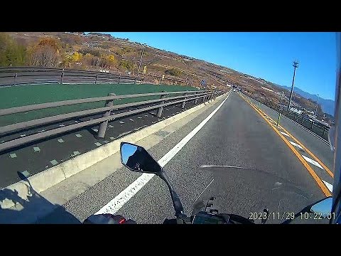 桔梗信玄餅工場テーマパークから国道140号線(西関東連絡道路)経由で道の駅 花かげの郷まきおかまで。FreedConn R3で撮影したオートバイ(KAWASAKI Z1000SX)での走行動画です。2023年11月29日(水)10:10~10:38頃に撮影。